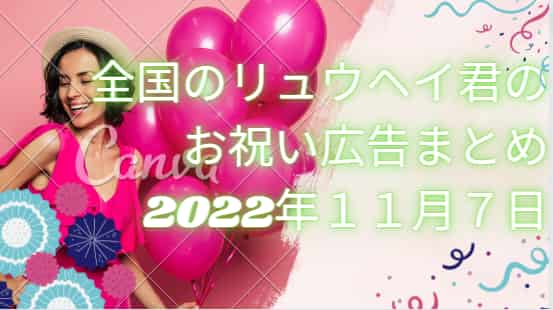 今年2022年は、ビーファーストリュウヘイ君の誕生日のお祝い広告が